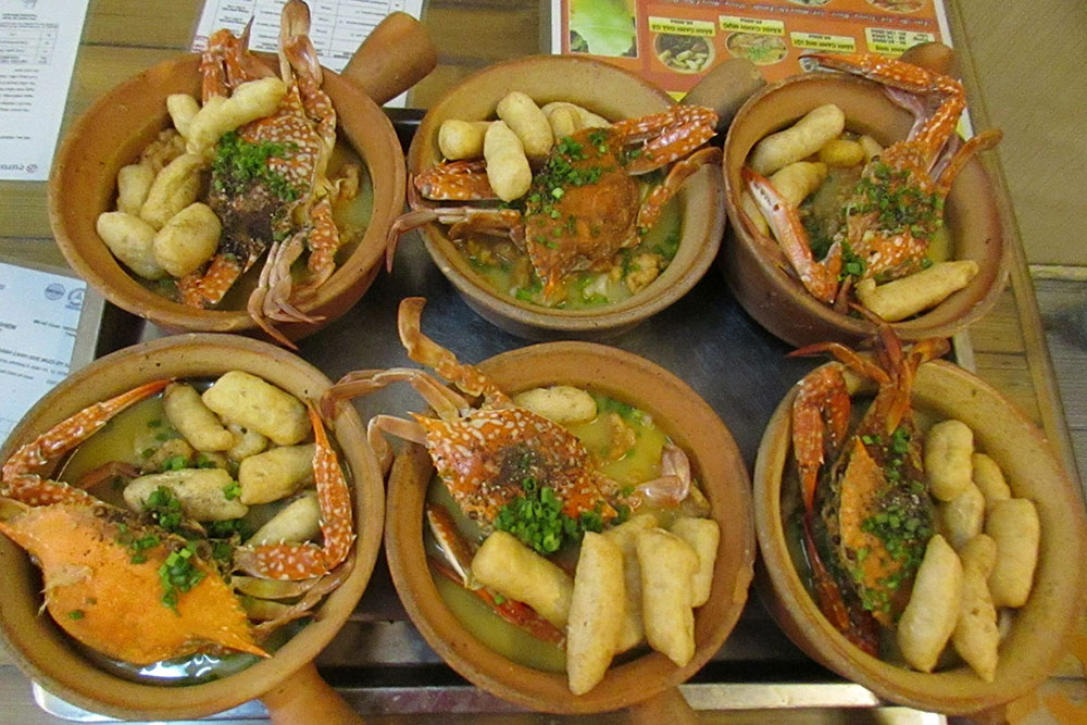 We’re back on the move now and hunting down the city’s tastiest Banh Canh Ghe. This Ocean Crab Soup is packed with with Tapioca noodles, pork rinds, fried fish cake and green chili sauce.
