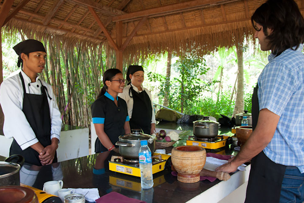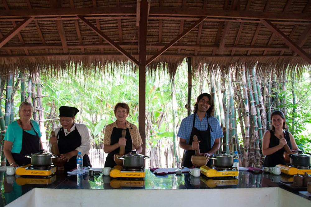 Cooking classes in Asia not only sharpen your kitchen skills but give you a deeper insight into the culture of a country. At 9:15 am a tuk tuk will take you to meet a local chef with dozens of delicious recipes to share. The cooking class in Siem Reap will introduce you to the traditional ingredients used in Camobodian cuisine. The local chef will explain step-by-step how to make a number of dishes, which you will then eat for lunch. At 12:30 pm, when your bellies are bulging, the tuk tuk will take you back to the hotel.