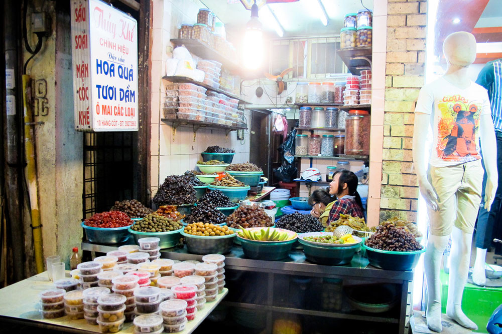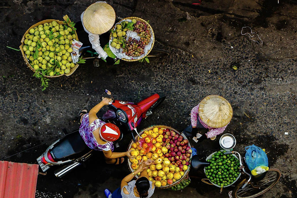 The Hanoi street food tour begins at a local market where dozens of street hawkers sell an incredible array of produce, from live seafood to exotic fruits and spices.