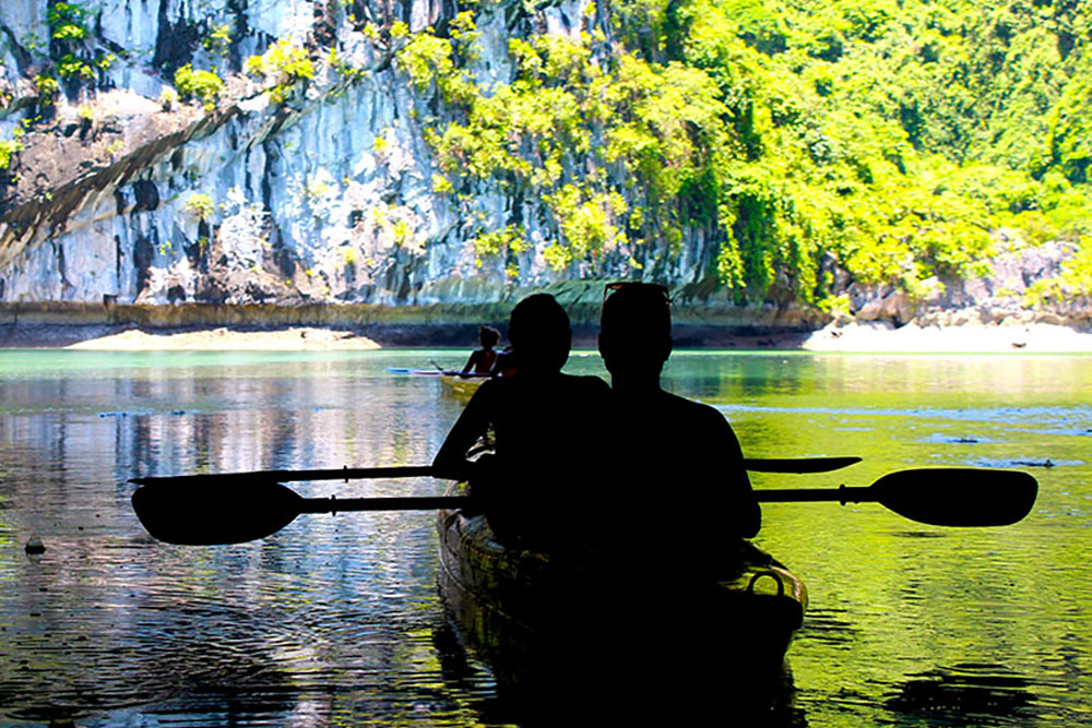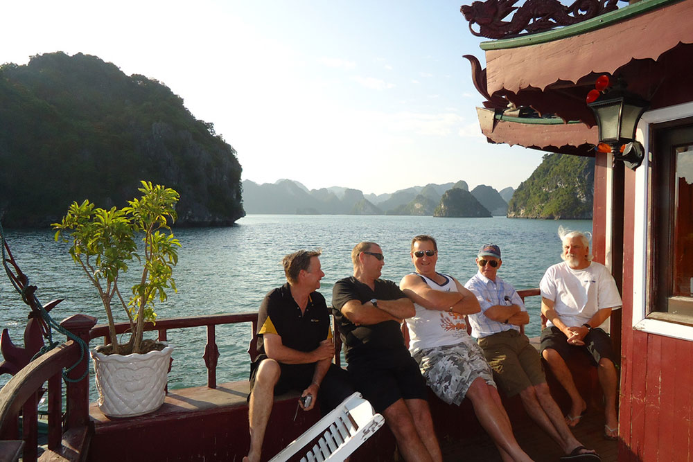 Greet the day with Tai Chi on the upper deck before breakfast on board. Then transfer to a day boat for a cruise to Lan Ha Bay, exploring the Light and Dark Cave by kayak, swimming and relaxing at the beaches. After a BBQ lunch on board there is time for more kayaking or leisure at the beaches. Visit the floating pearl farm and swim at the Three Peach Beach (weather permitting). After cruising back to the main boat you can enjoy sunset cocktails and dinner with your fellow travellers to talk about your perfect day on the bay.